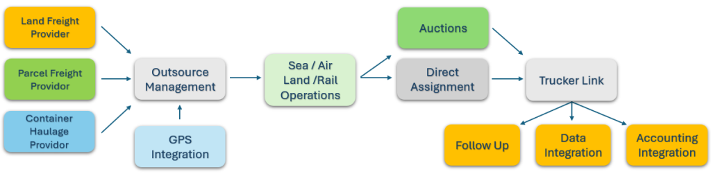 You can share details of the relevant transport job directly with your carrier via the trucker link through the operation modules. The system is designed to allow carriers to track shipments step by step, integrated with the operation, and to enter dates and data into the system as needed. This allows for easy tracking of shipments and full integration into the operational flow.